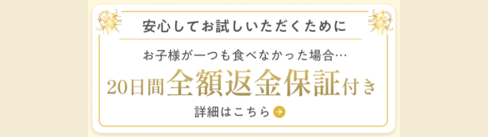 初回のみ、子どもが全く商品を食べてくれなかった場合に全額返金保証が適用されます。