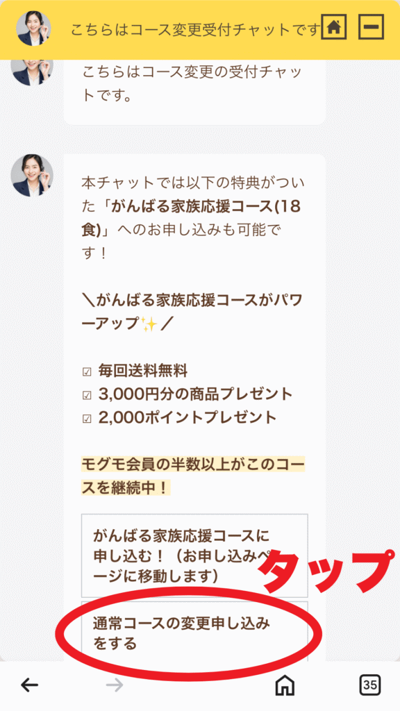 がんばる家族応援コースへの変更方法はマイページから簡単にできます。